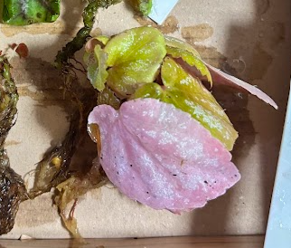 独特の葉の形と質感が、テラリウムの中に野生的な雰囲気をもたらしてくれます。葉がピンクや赤っぽくなるため、緑が多い中で彩をプラスできると思い、入れました。