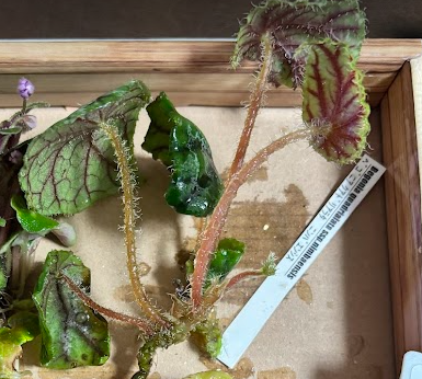 葉の模様が印象的なベゴニアです。私は、このように少し毒々しさを感じられるような葉脈が大好きです!