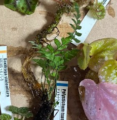 非常に小型のユキノシタで、テラリウムの限られたスペースに最適です。今はかなり小さいですが、徐々に株分けして増やせます。