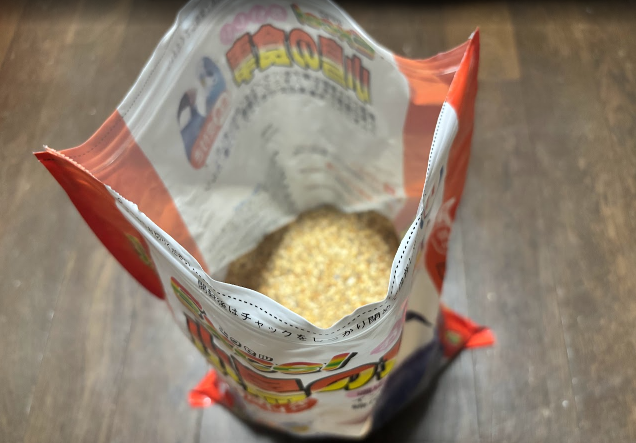 もし今、エサの袋の山にイライラしているなら、まずは一番よく使うエサをワンタッチの容器に移し替えるところから始めてみませんか?